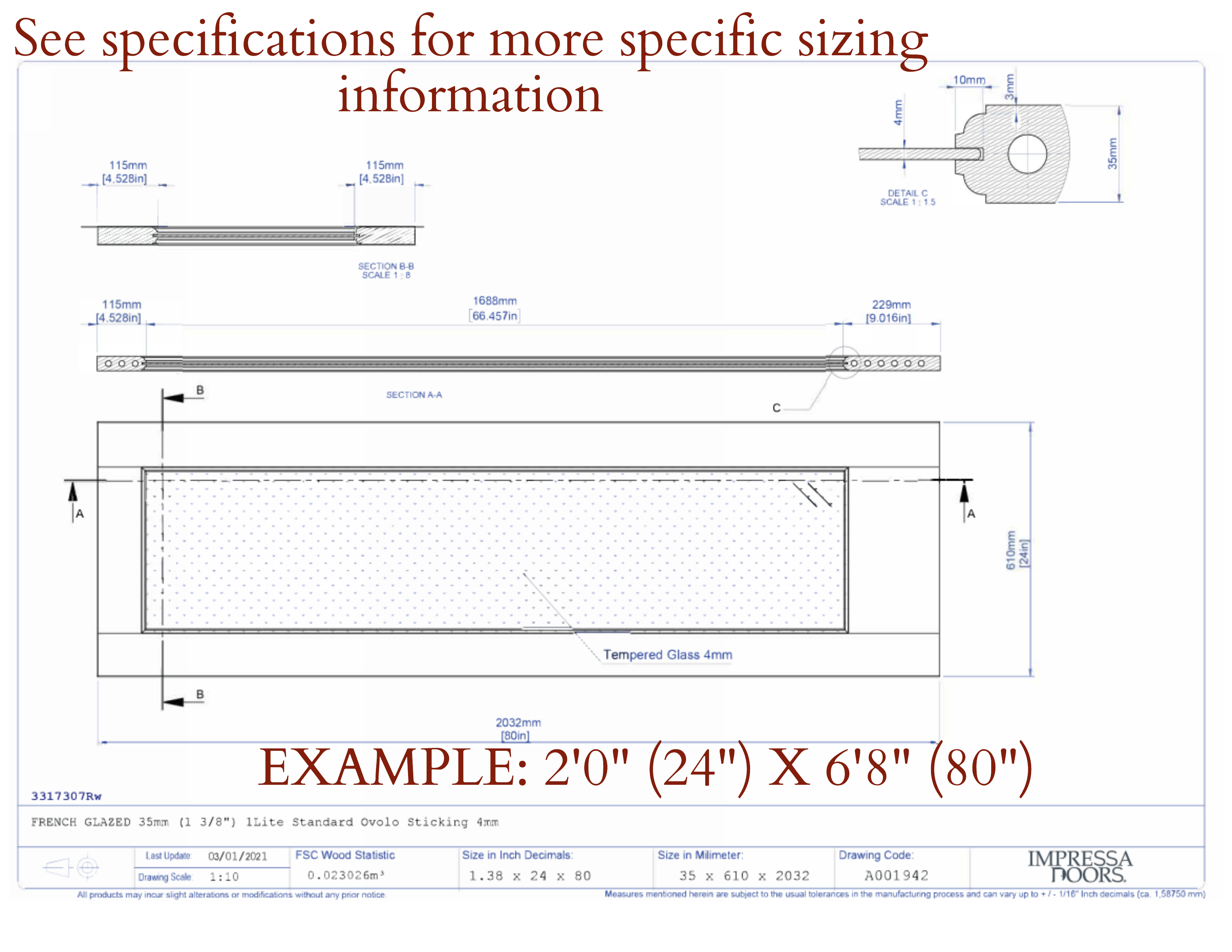 | 1LCLEARPRIM6830138 | 3'0" (36") X 6'8" (80") |