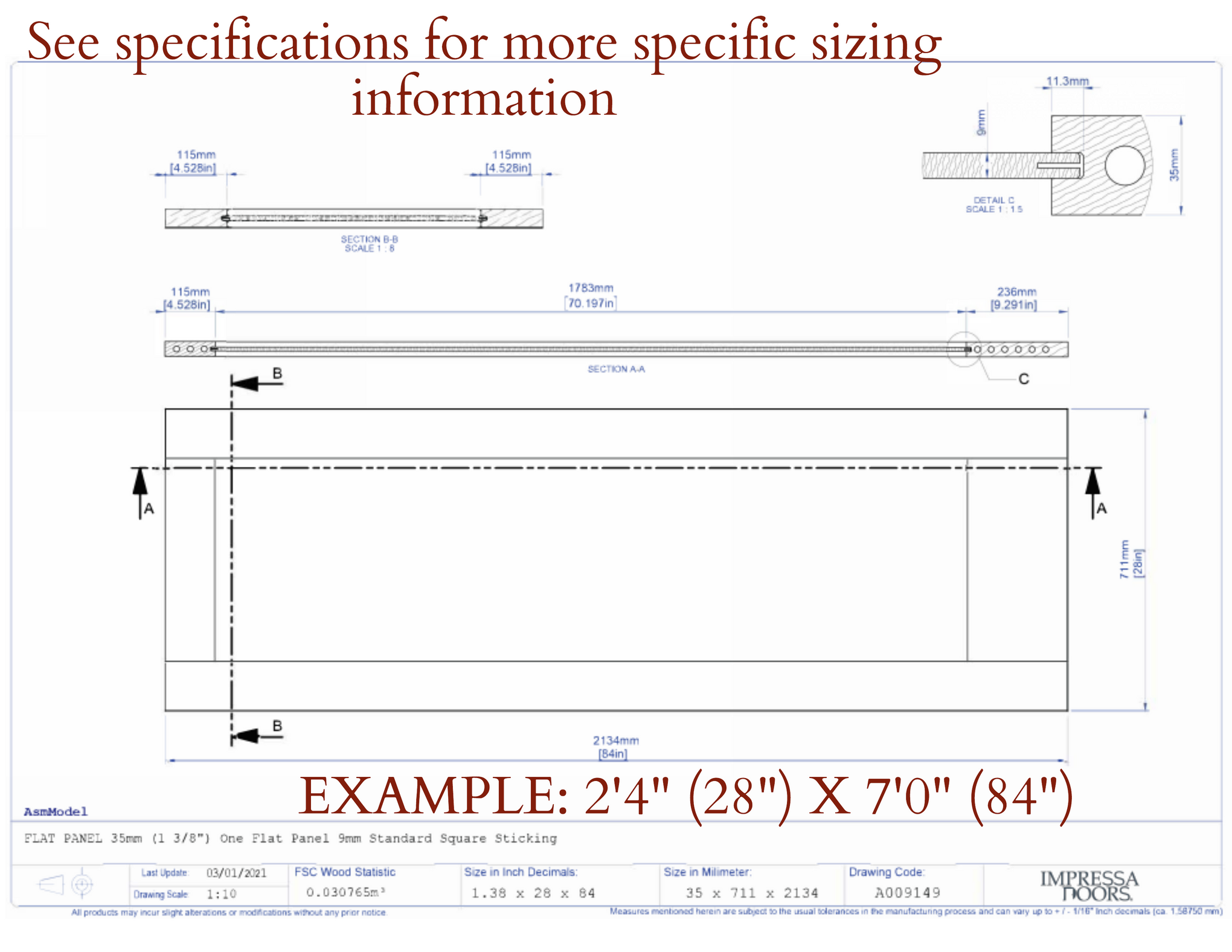 | 1PFLAT7024MDF138 | 2'4" (28") X 7'0" (84") |