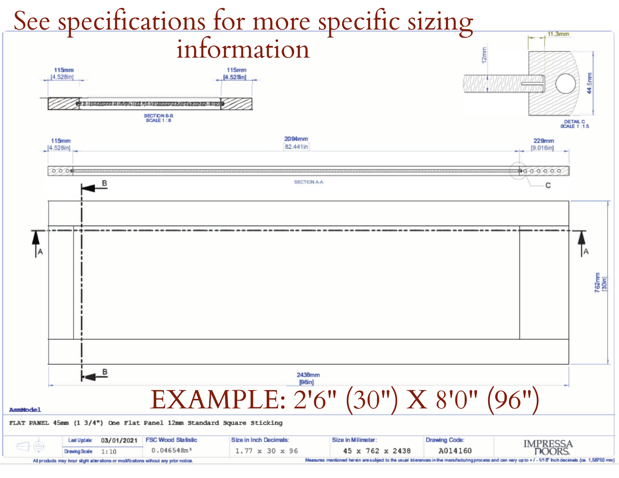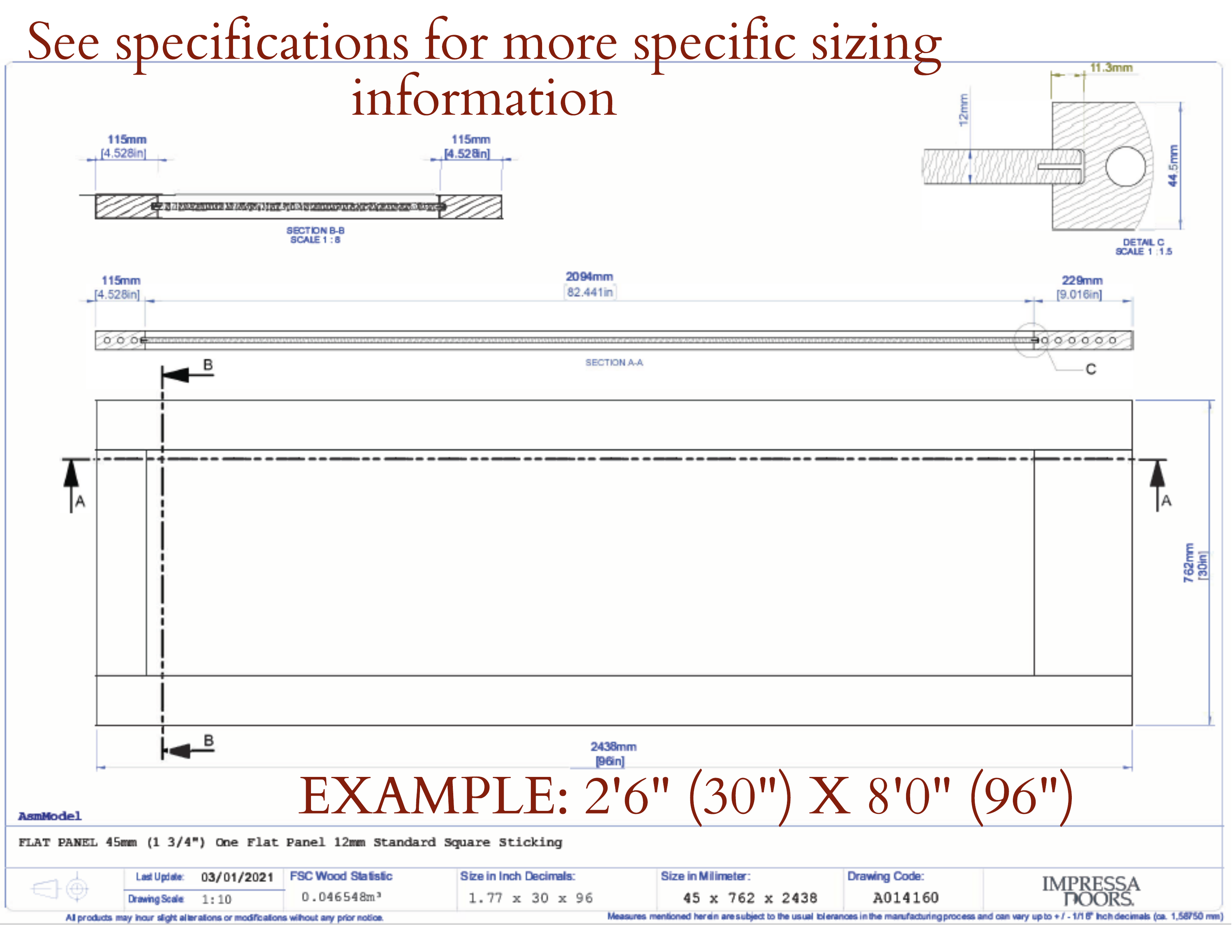 - Actual width will be 1/8" under size.