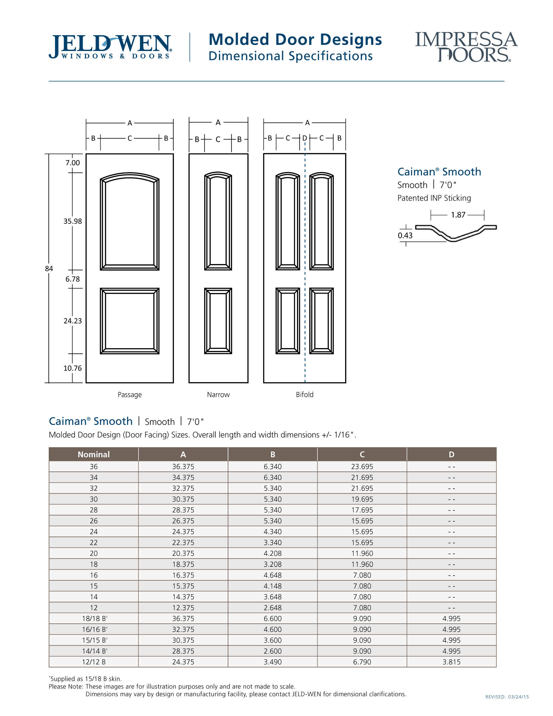 CAIM70210SC138 | 2'10" (34") X 7'0" (84") |