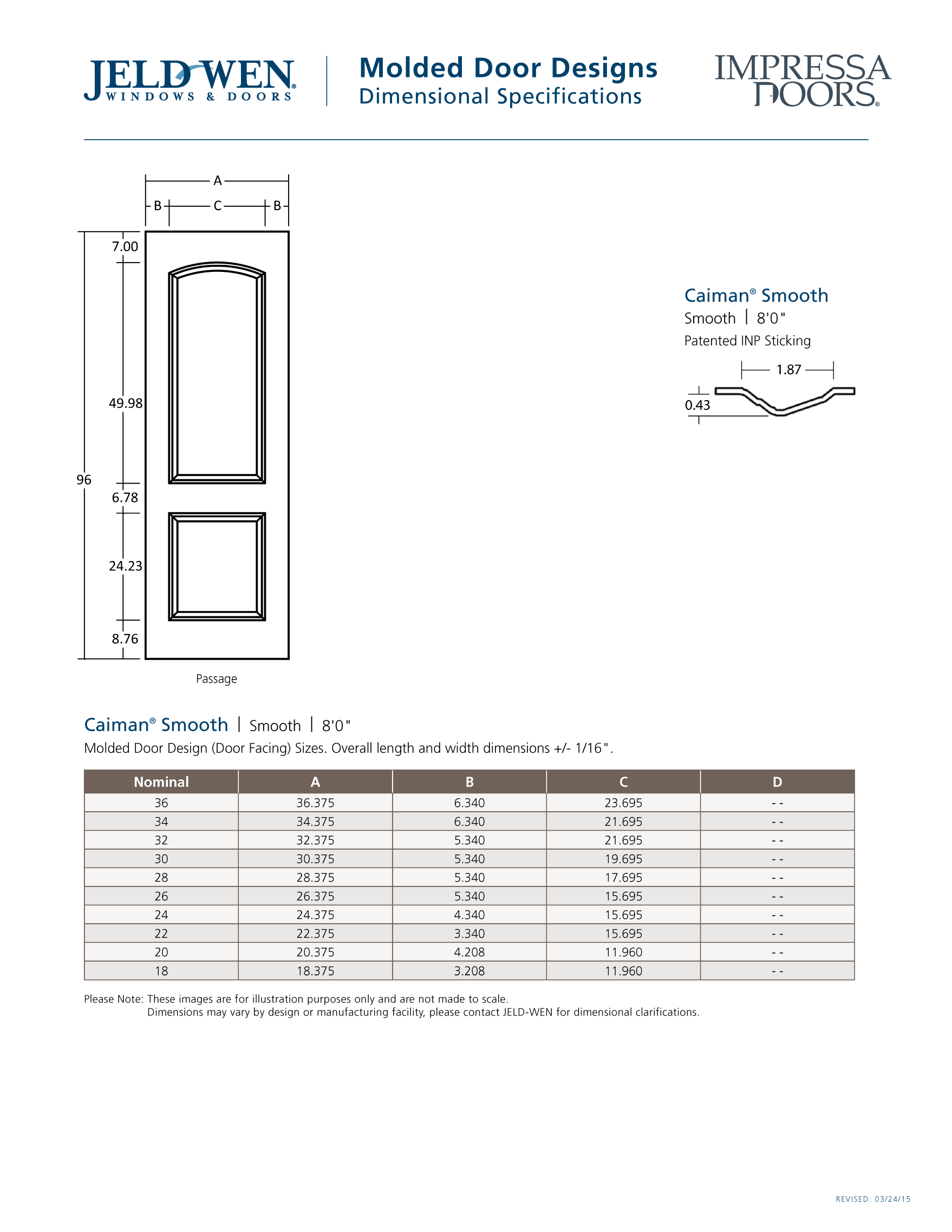 CAIM8022SC134 | 2'2" (26") X 8'0" (96") |