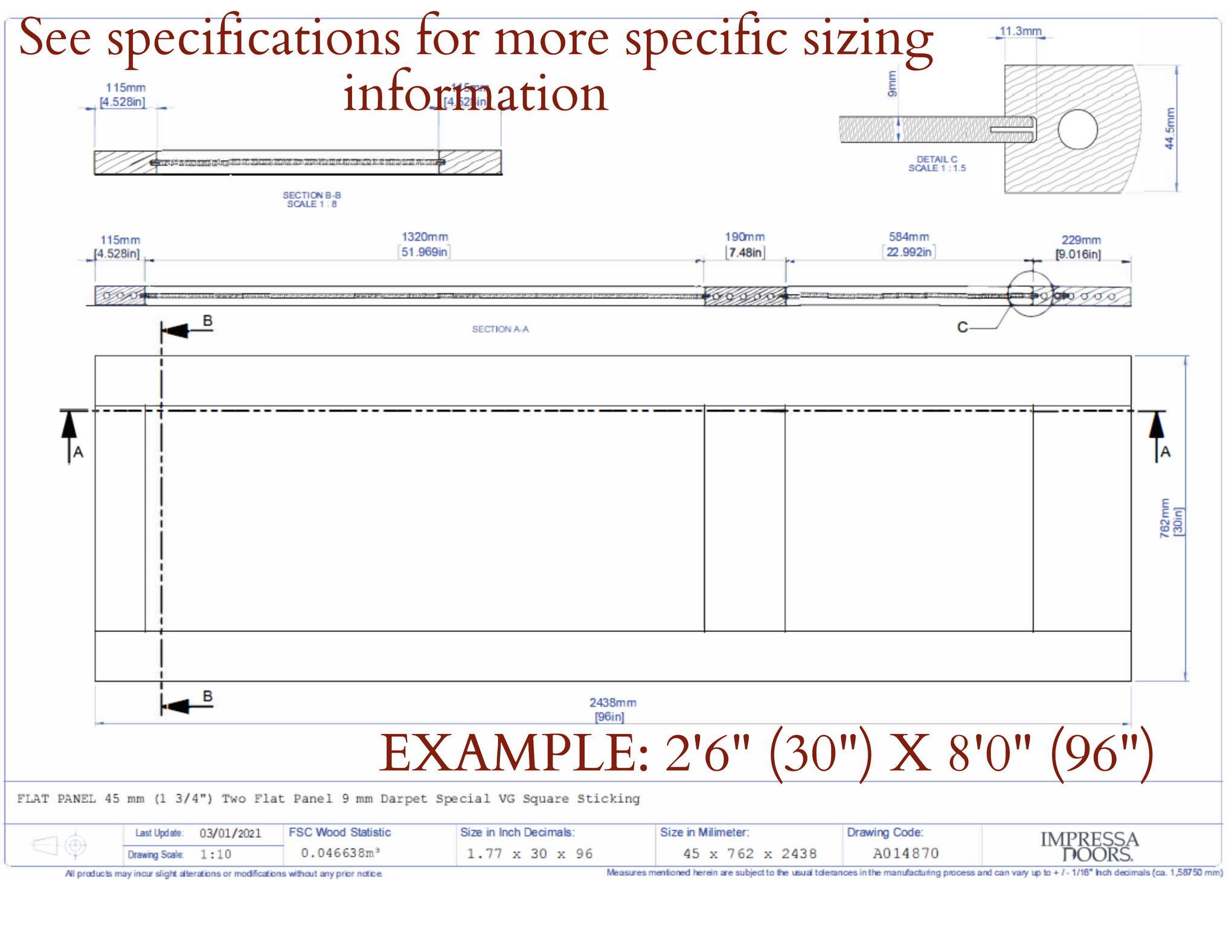 | 2PFLAT80210MDF134 | 2'10" (34") X 8'0" (96") |