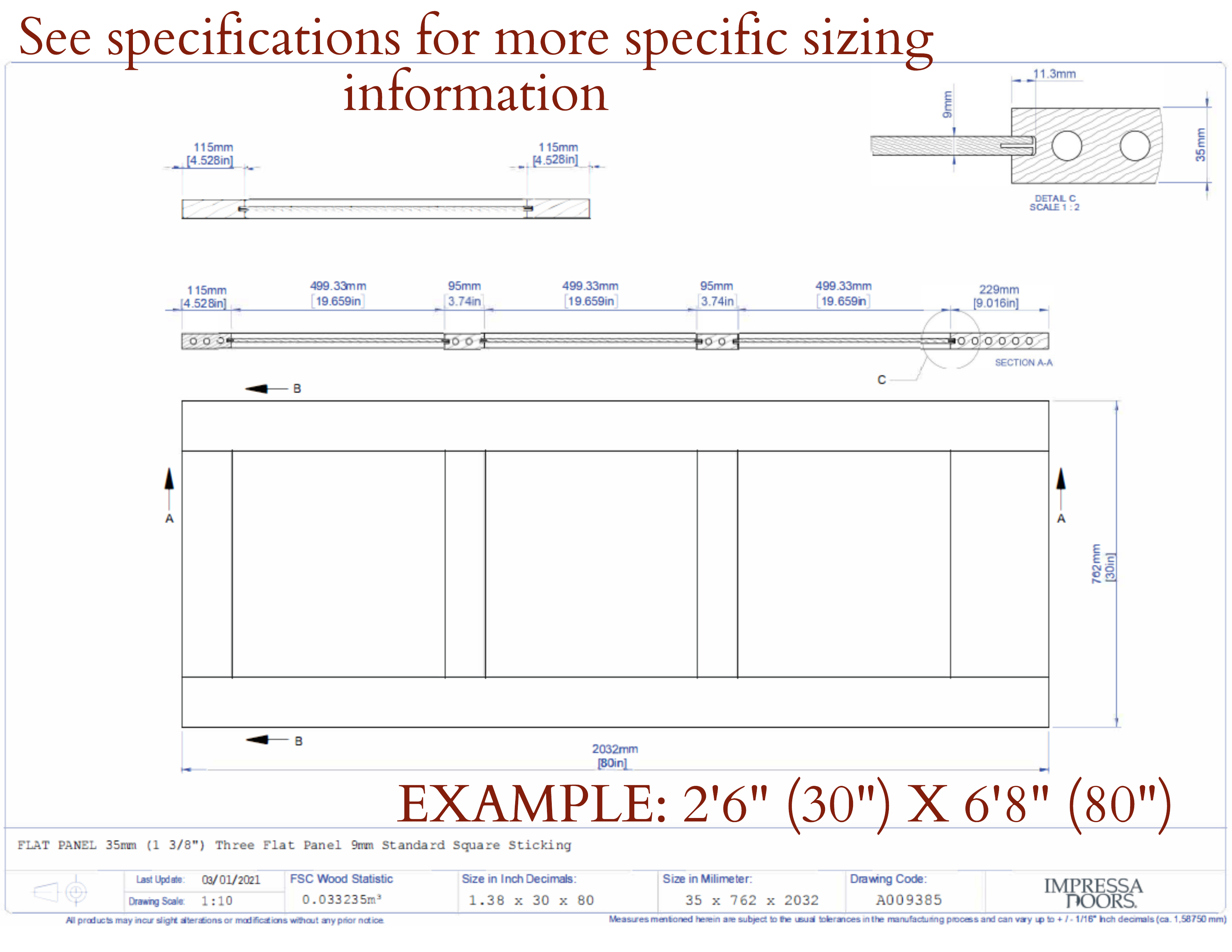 | *EQUAL*3PF6830138 | 3'0" (36") X 6'8" (80") |