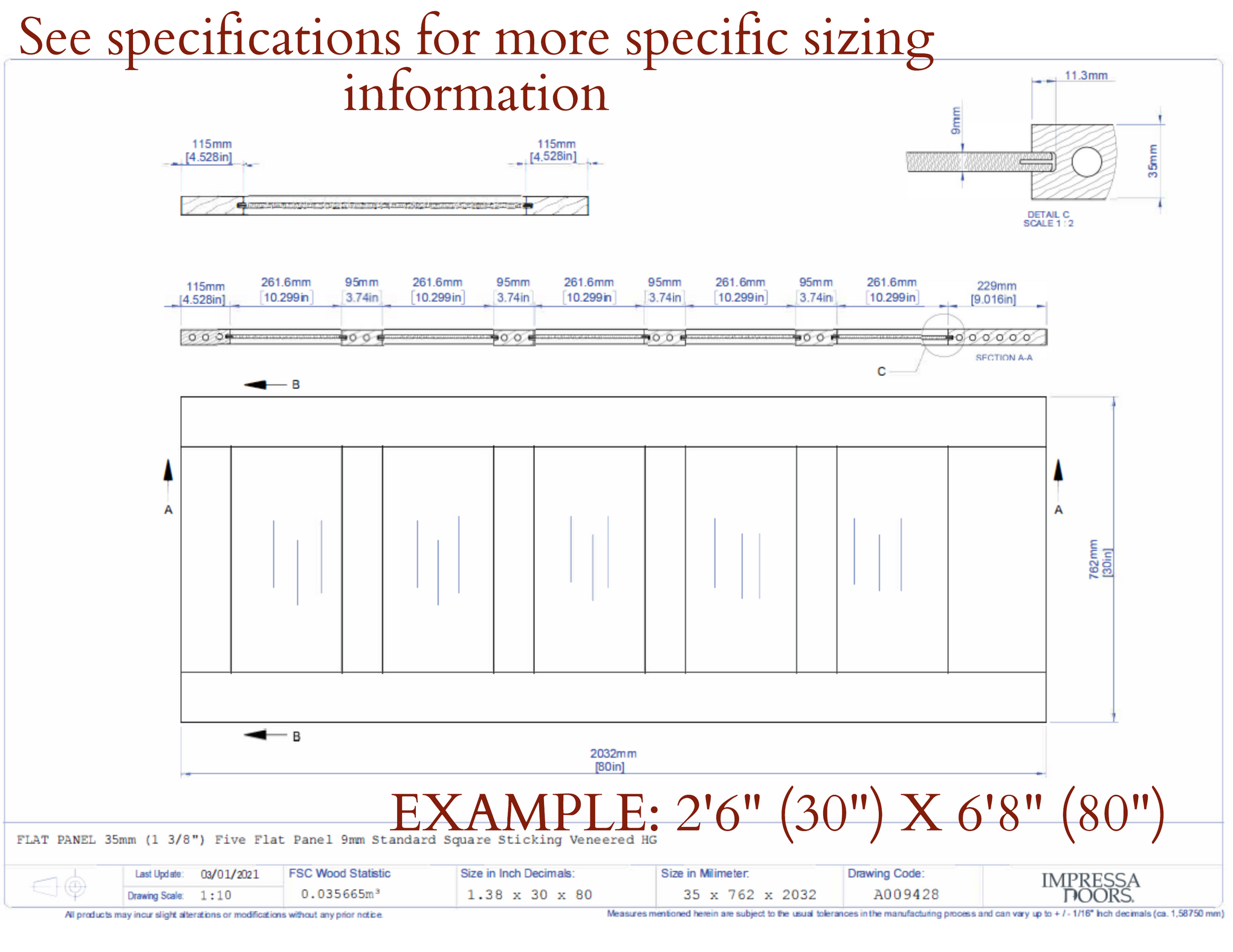 5PFLAT6830MDF138 | 3'0" (36") X 6'8" (80") |