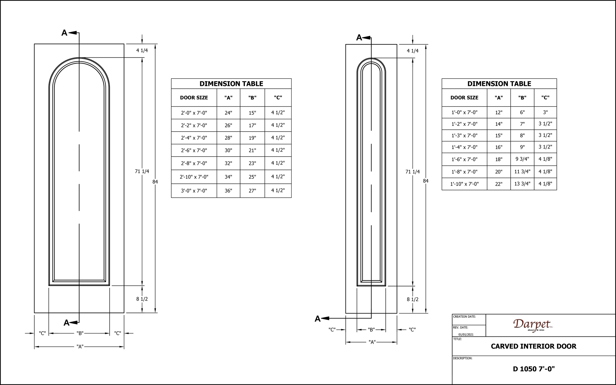 CARVED-D1050-(Profile #) | 1'10" (22") |
