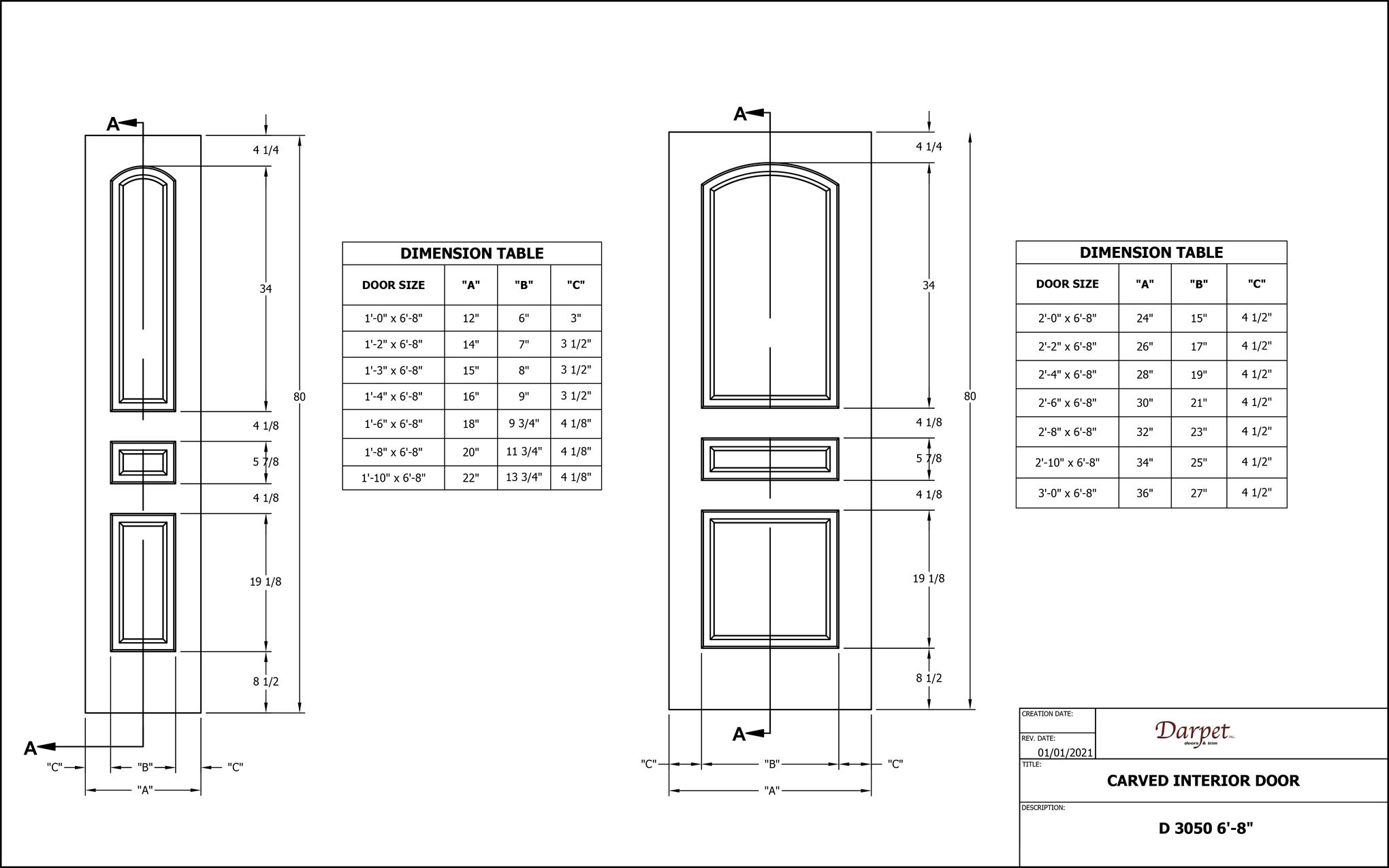 CARVED8026-D3050-(Profile #) | 2'6" (30") X 8'0" (96") |