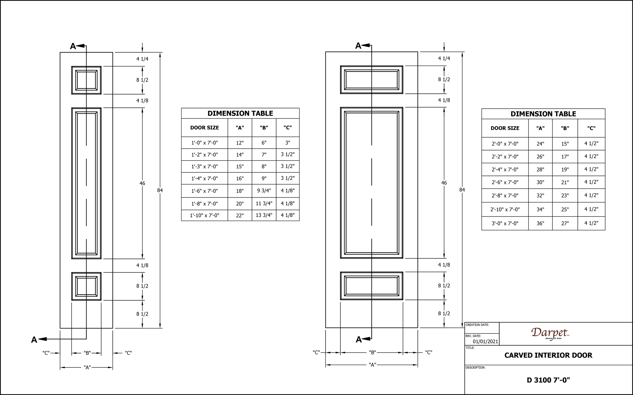 CARVED8024-D3100-(Profile #) | 2'4" (28") X 8'0" (96") |