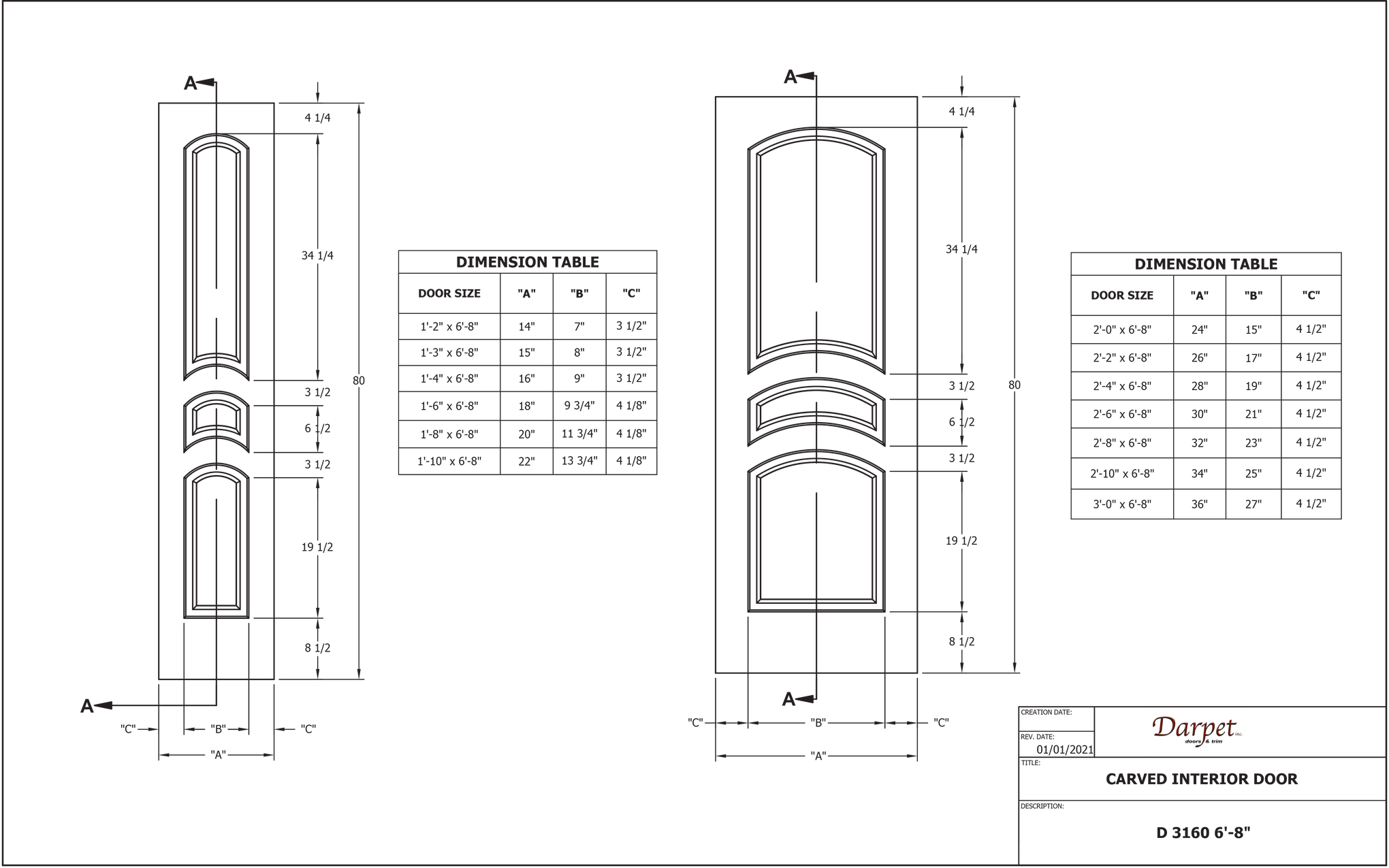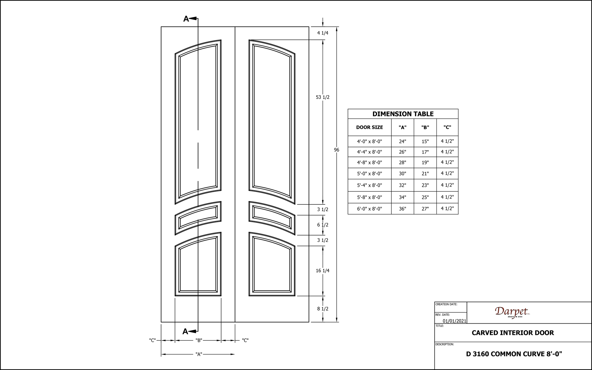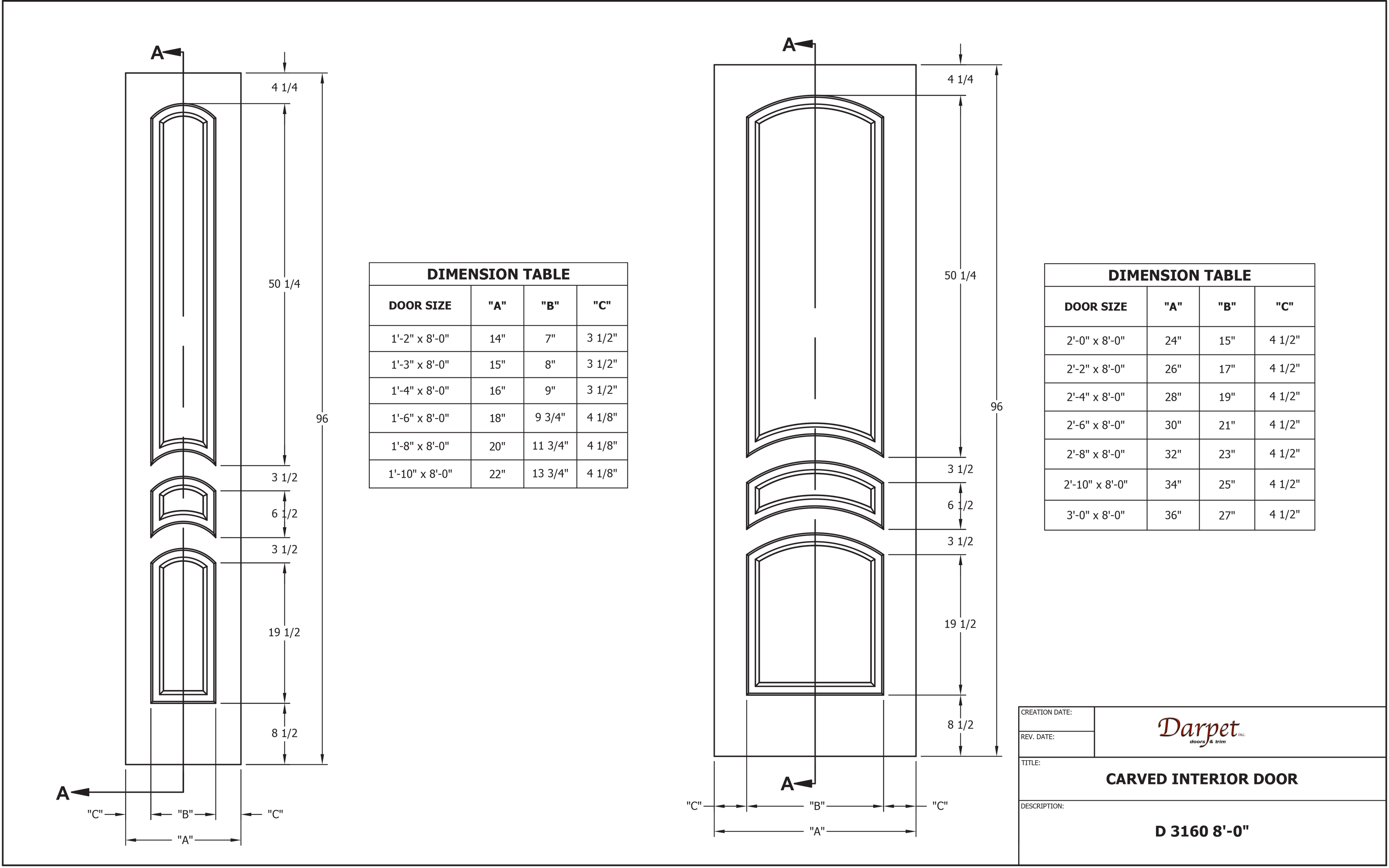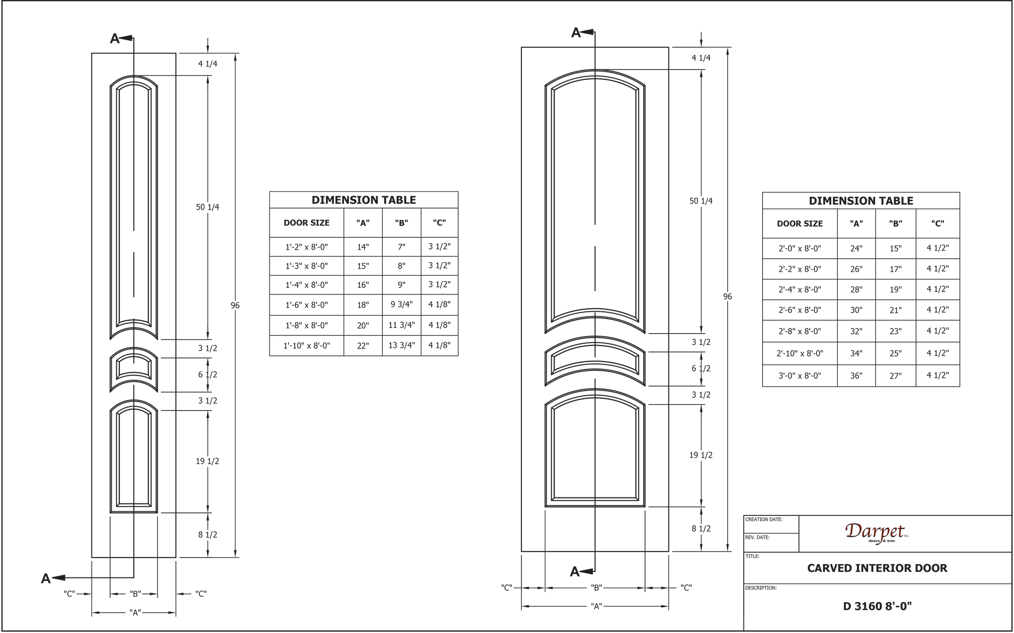 | CARVED8026-D3160-(Profile #) | 2'6" (30") X 8'0" (96") |