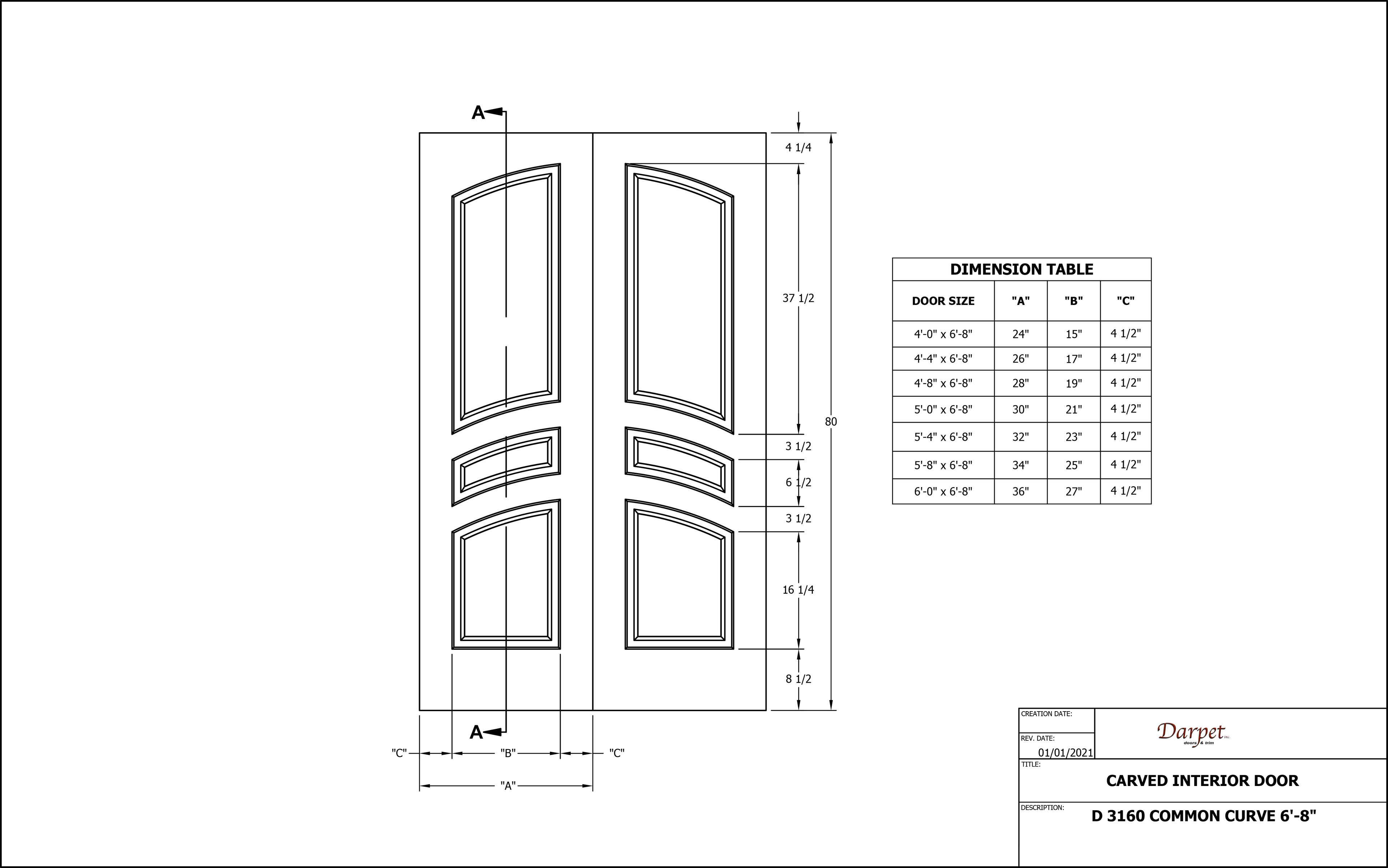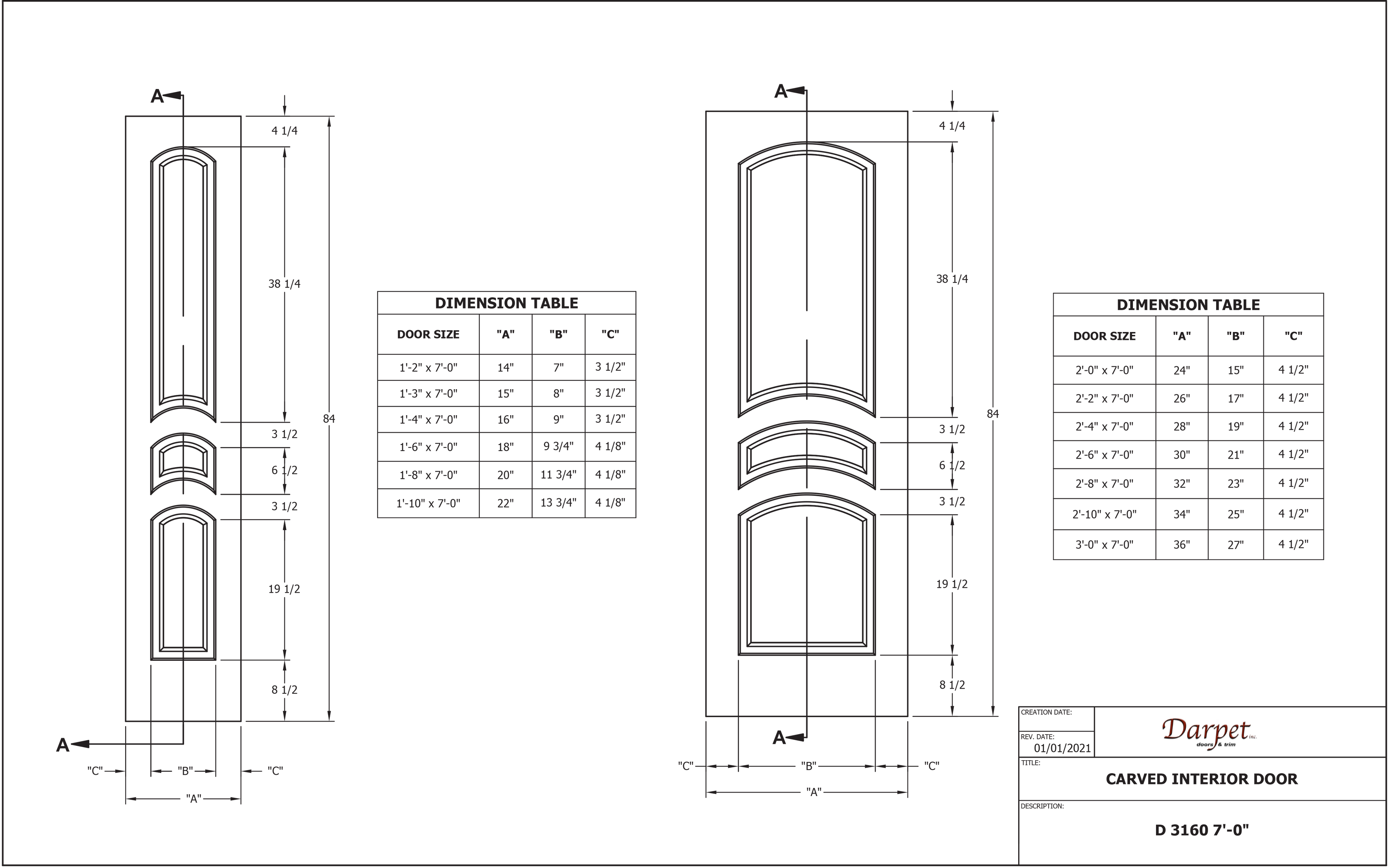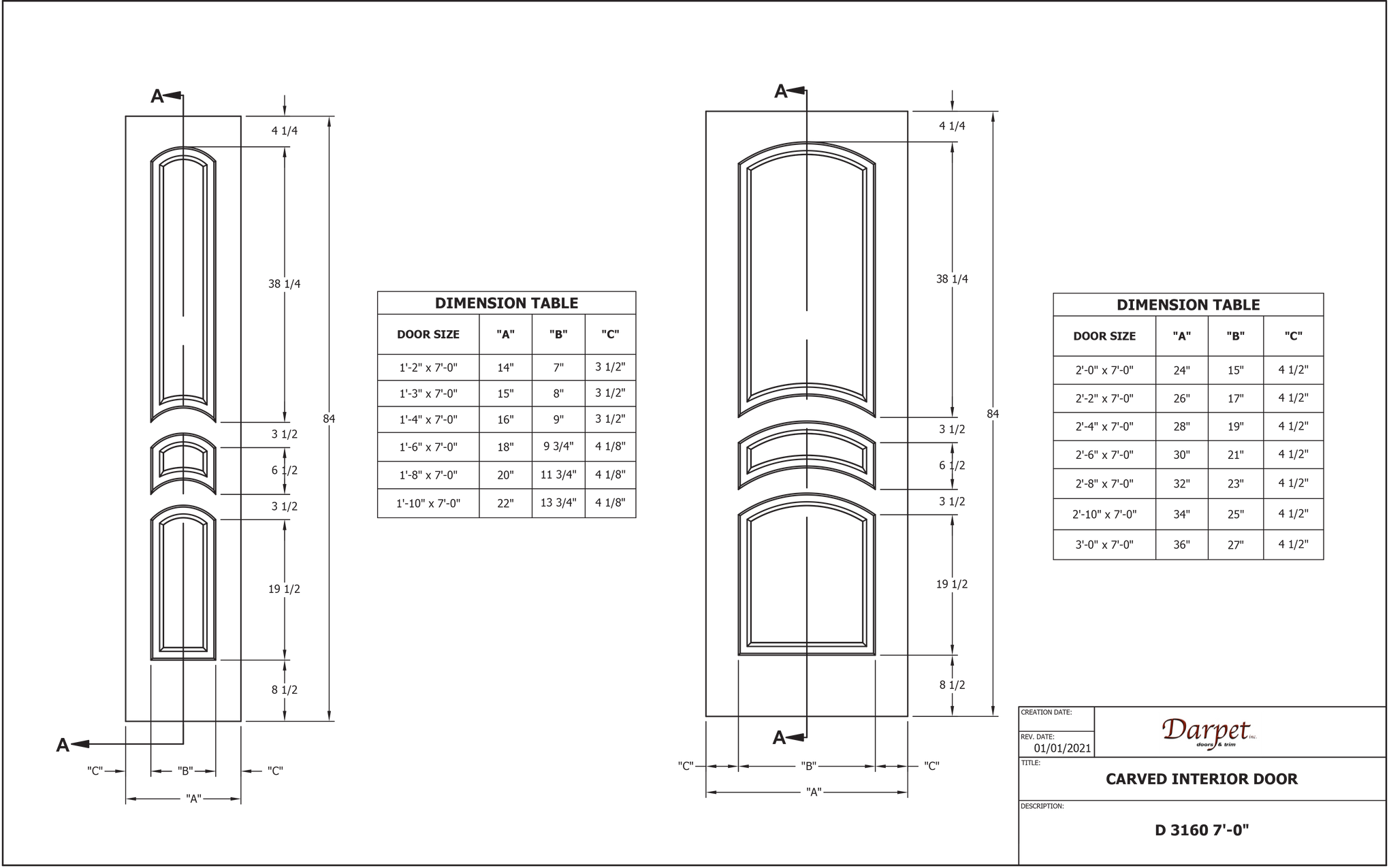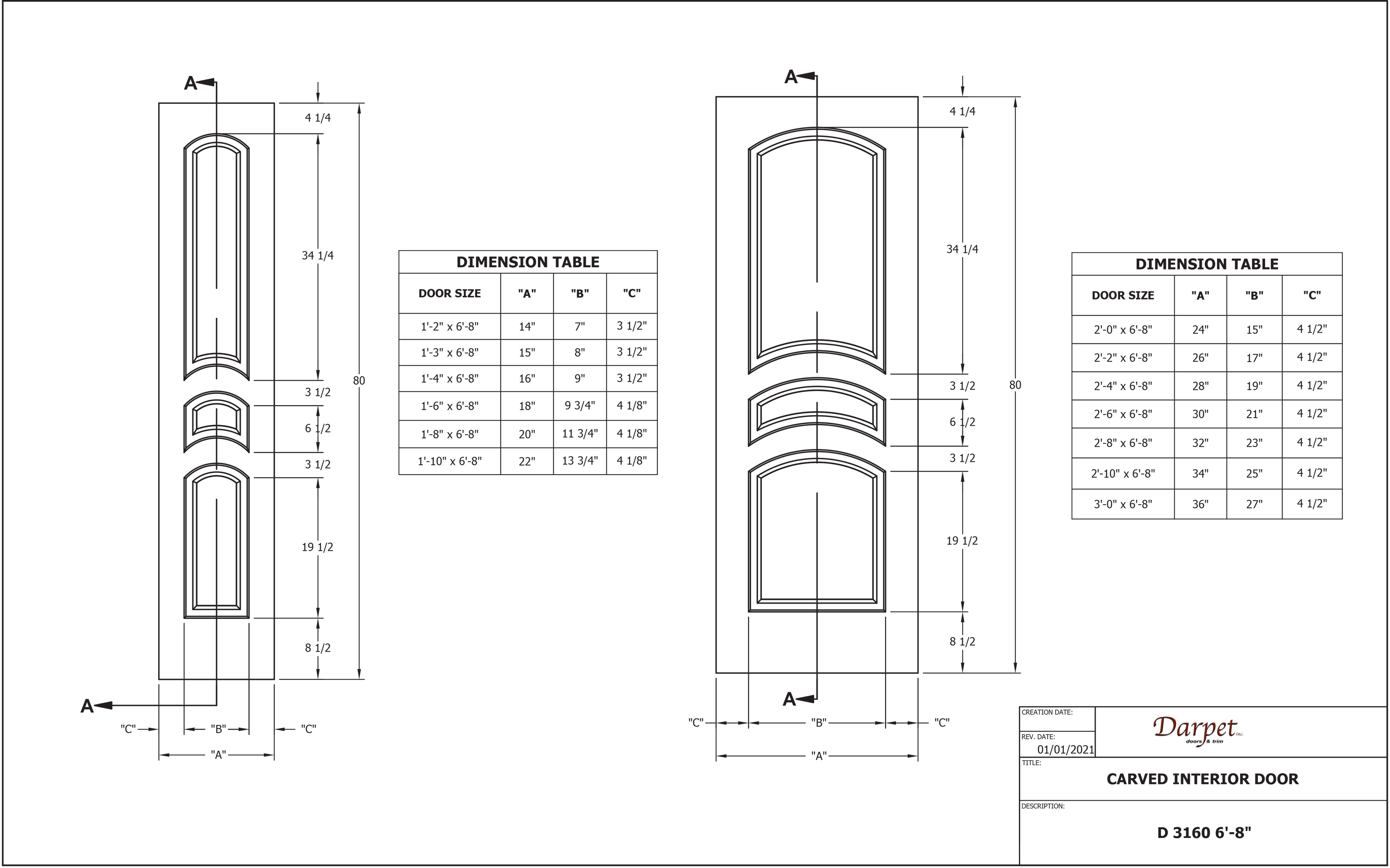 | CARVED8030-D3160-(Profile #) | 3'0" (36") X 8'0" (96") |