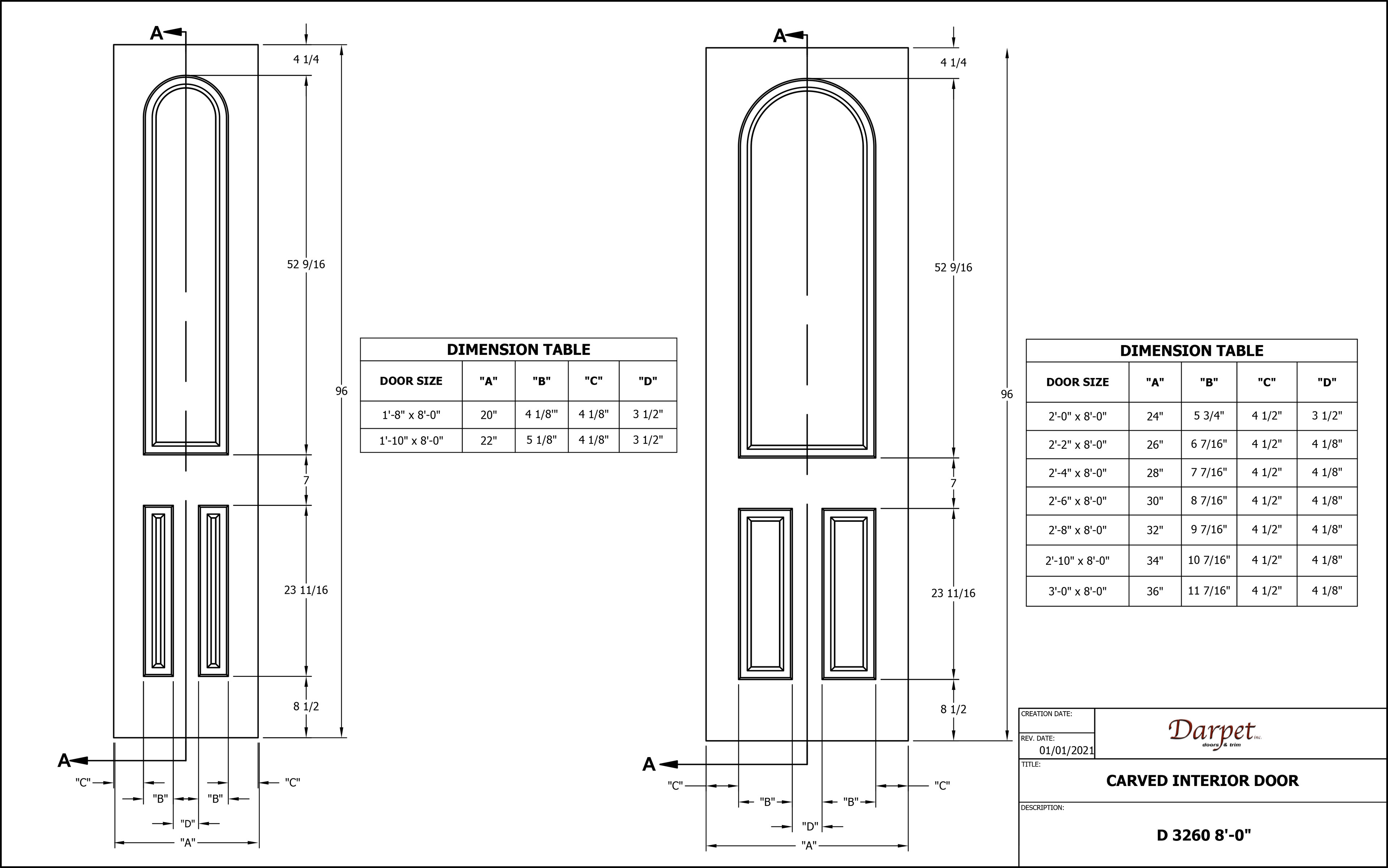 | CARVED8022-D3260-(Profile #) | 2'2" (26") X 8'0" (96") |