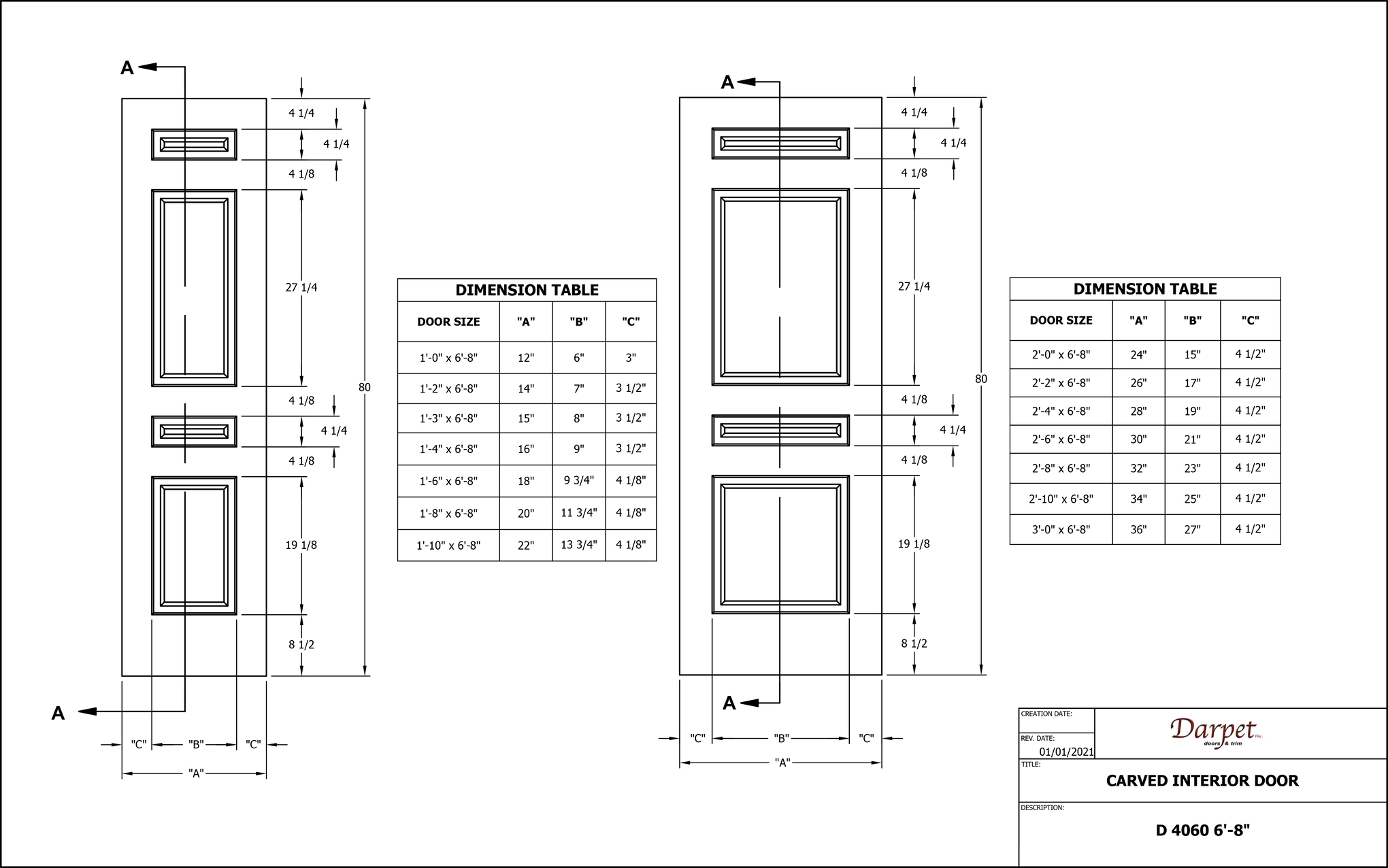 CARVED8024-D4060-(Profile #) | 2'4" (28") X 8'0" (96") |