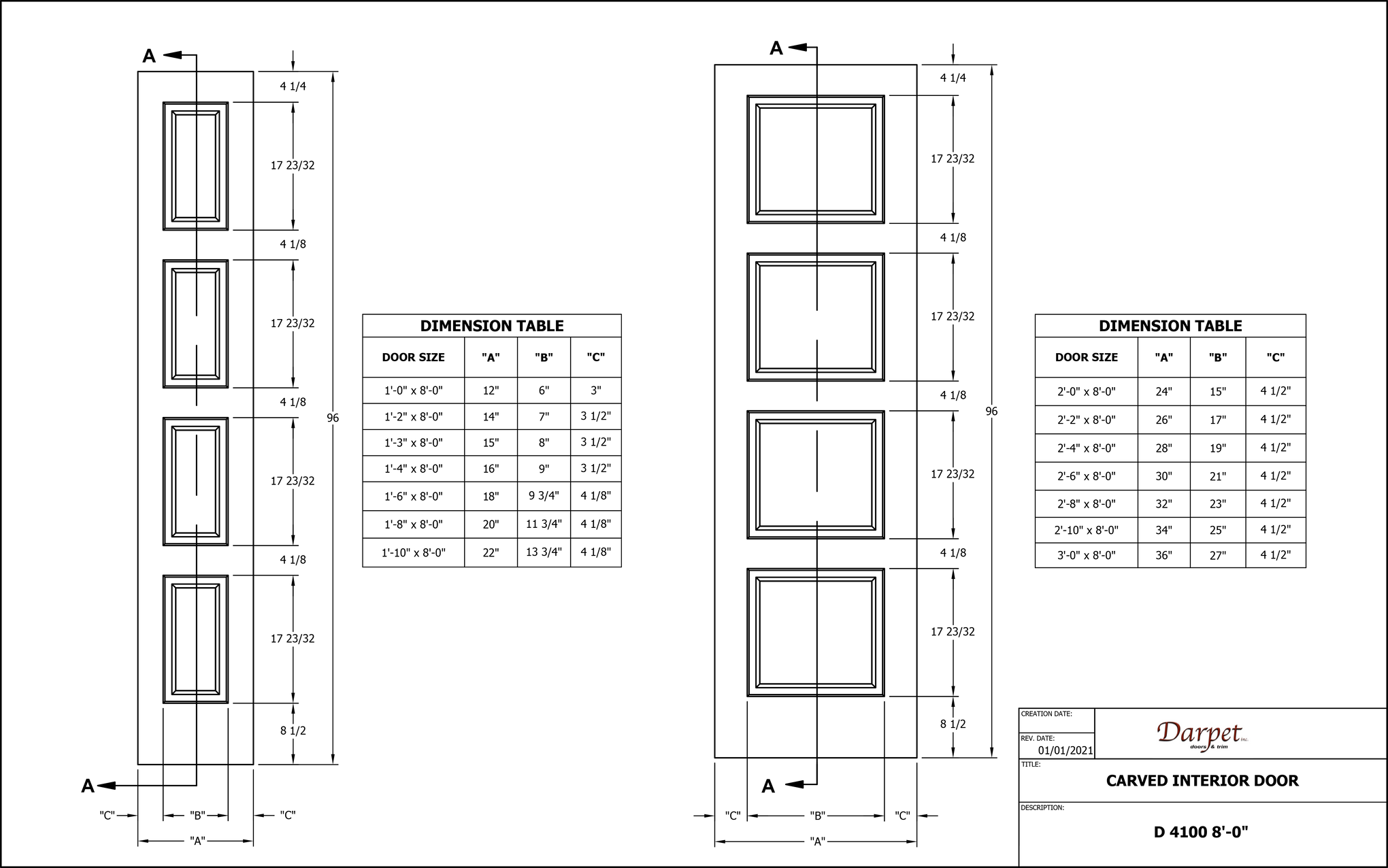CARVED8024-D4100-(Profile #) | 2'4" (28") X 8'0" (96") |