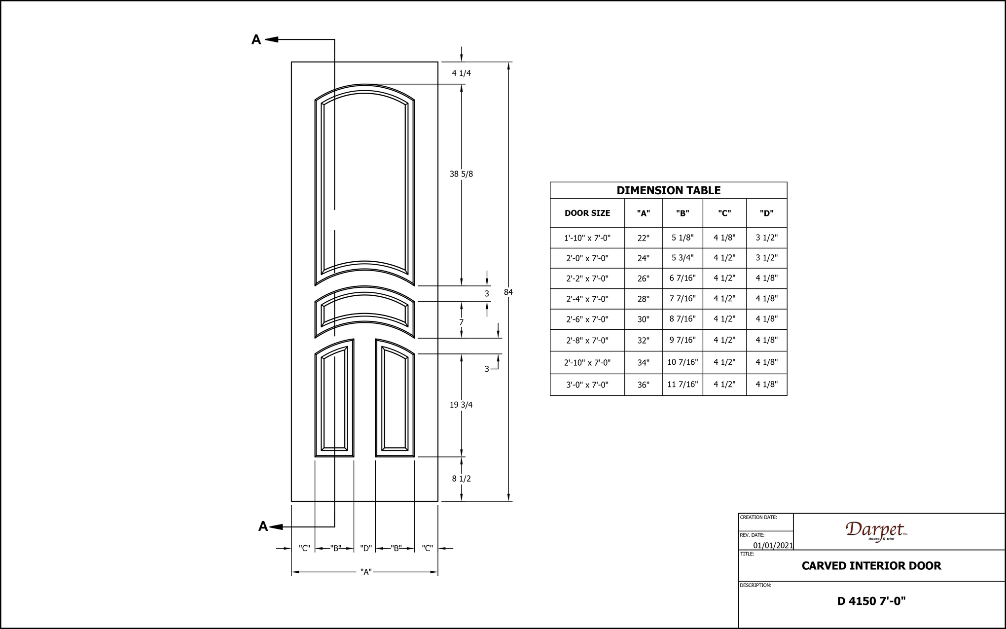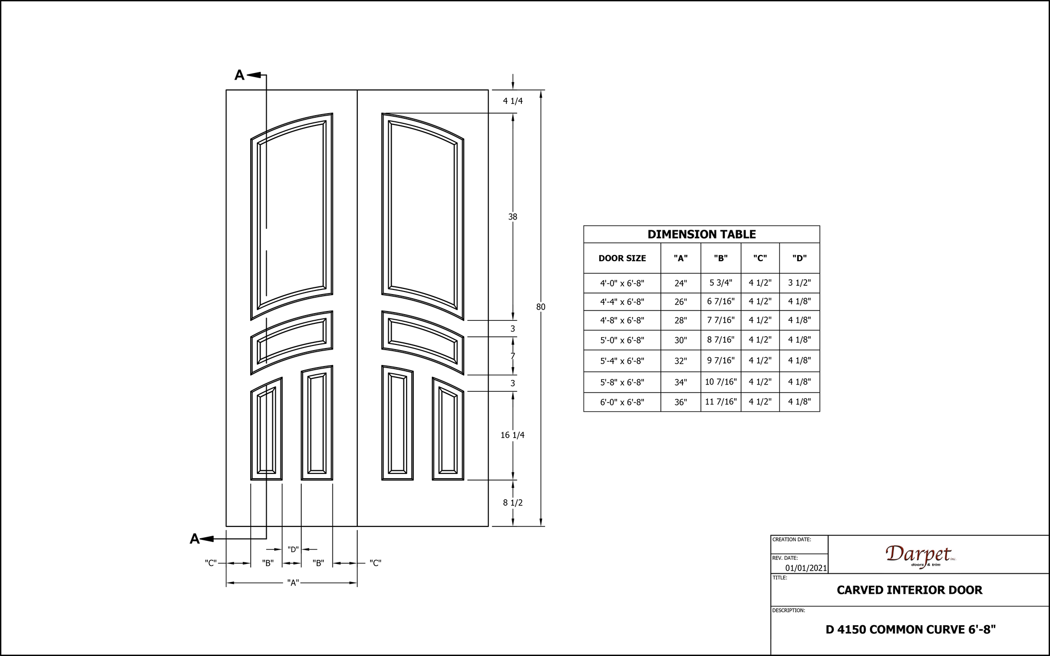 CARVED8024-D4150-(Profile #) | 2'4" (28") X 8'0" (96") |