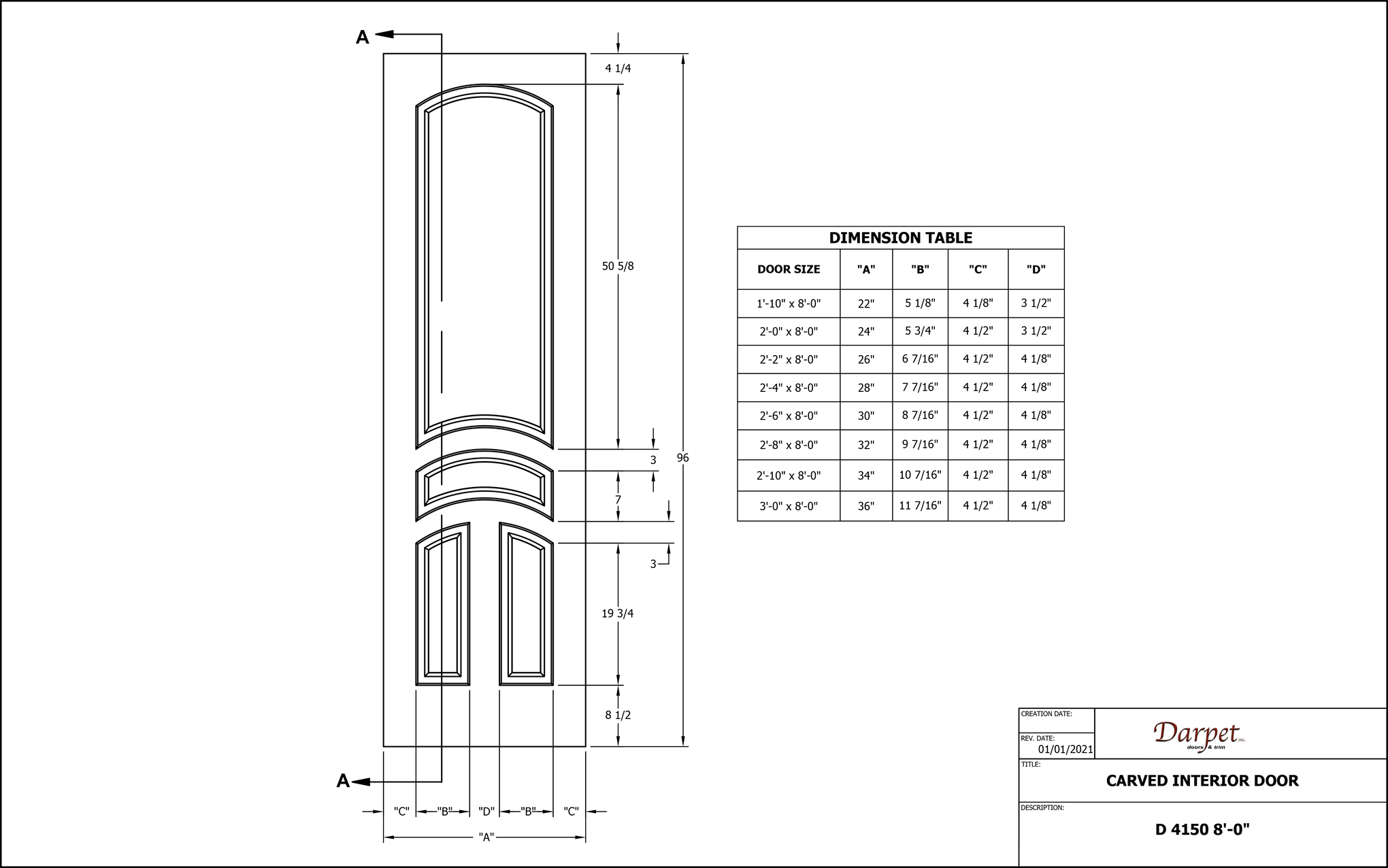 CARVED8022-D4150-(Profile #) | 2'2" (26") X 8'0" (96") |