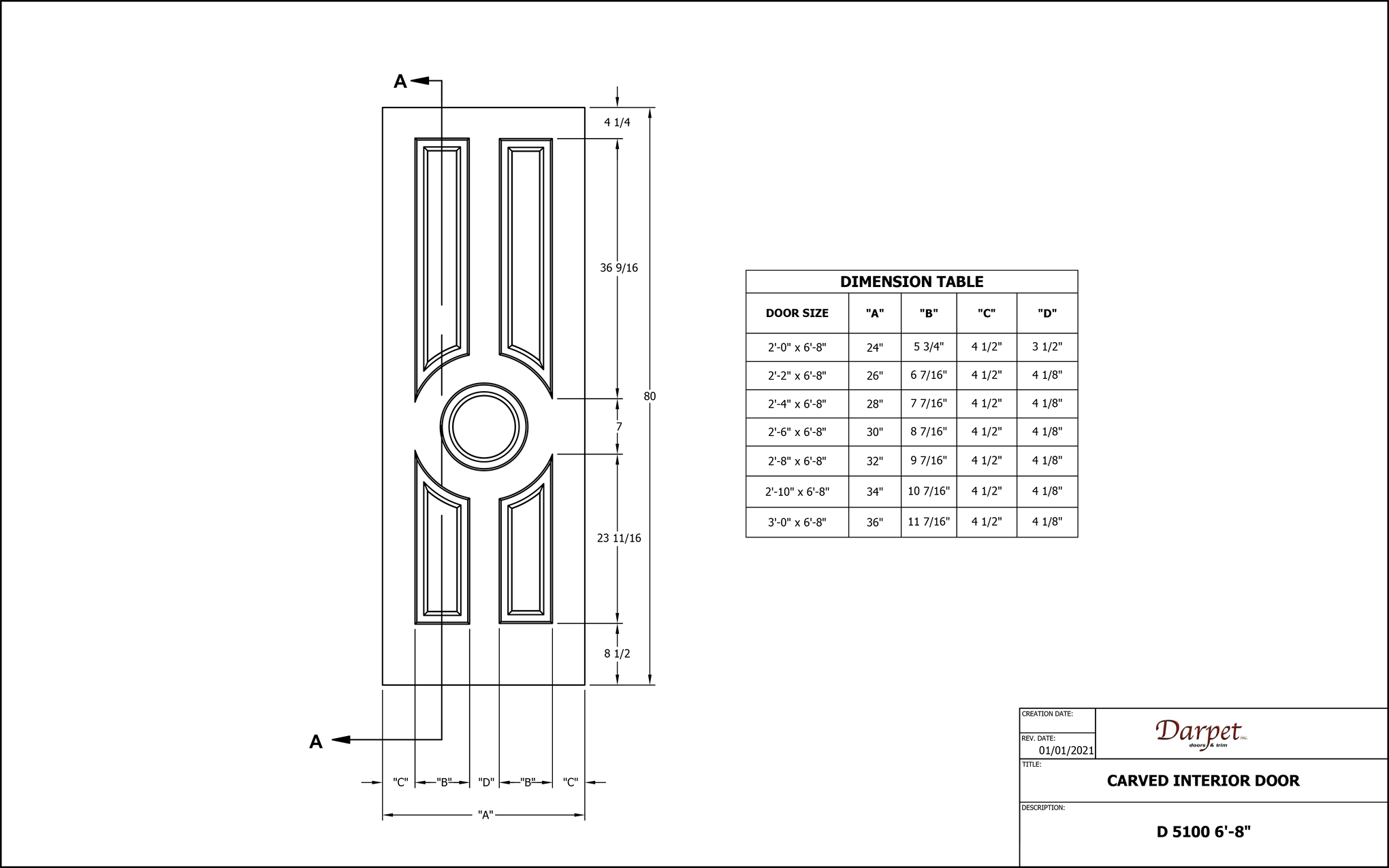 CARVED8028-D5100-(Profile #) | 2'8" (32") X 8'0" (96") |