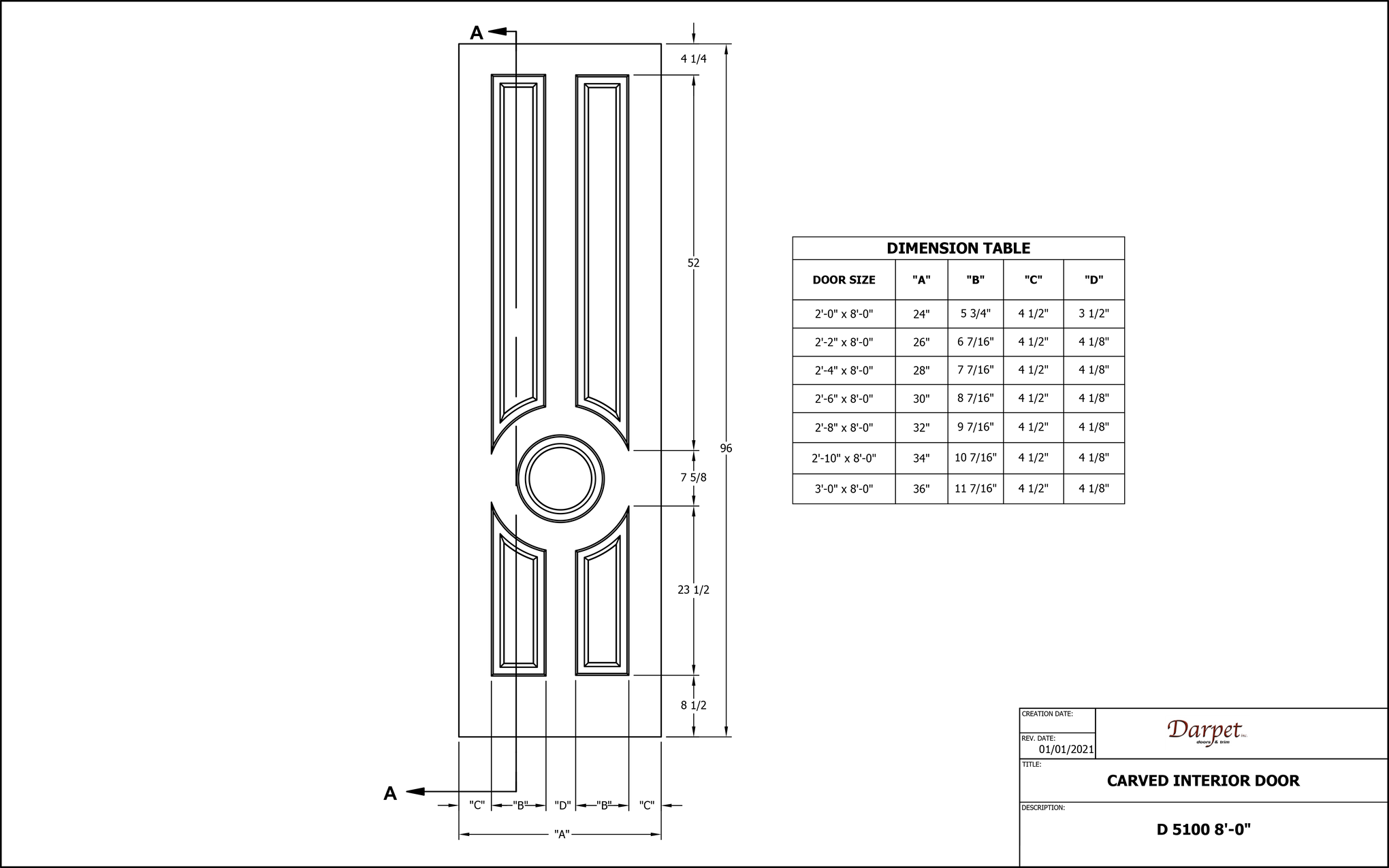 CARVED8024-D5100-(Profile #) | 2'4" (28") X 8'0" (96") |
