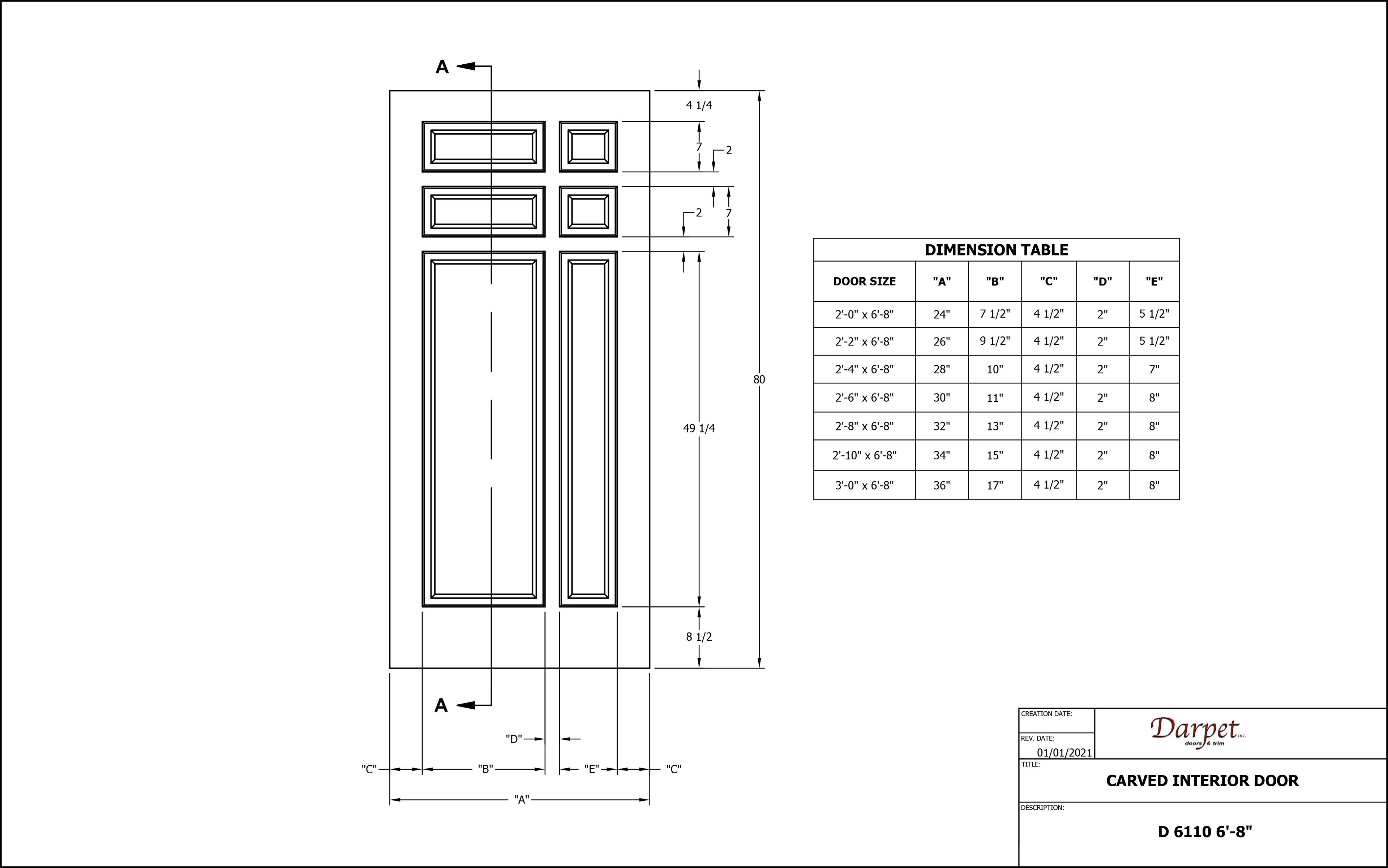 | CARVED8026-D6110-(Profile #) | 2'6" (30") X 8'0" (96") |