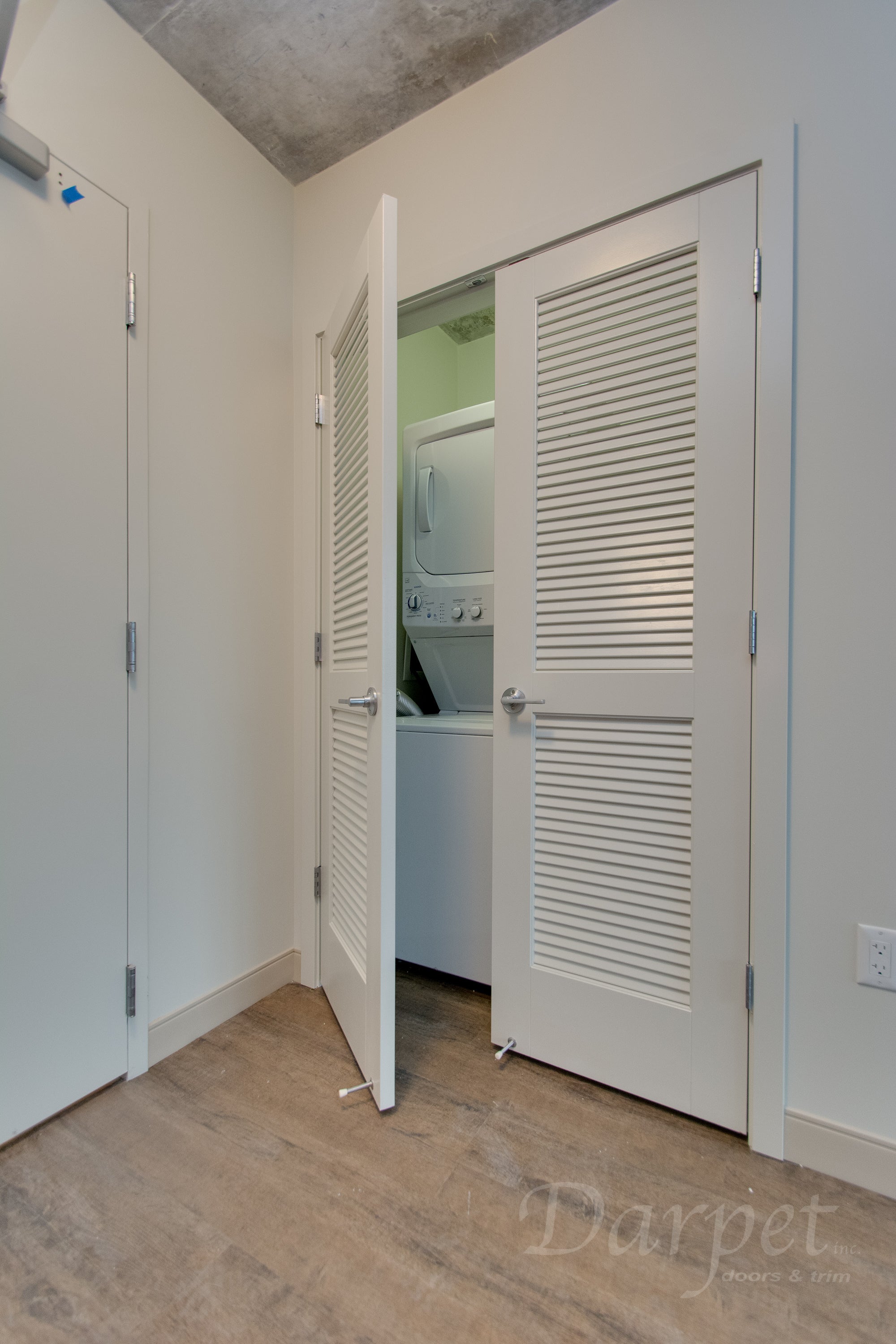 - Louver doors are a perfect fit for pantries, closets, and laundry rooms as the wooden slats conceal the area while allowing ventilation throughout the space